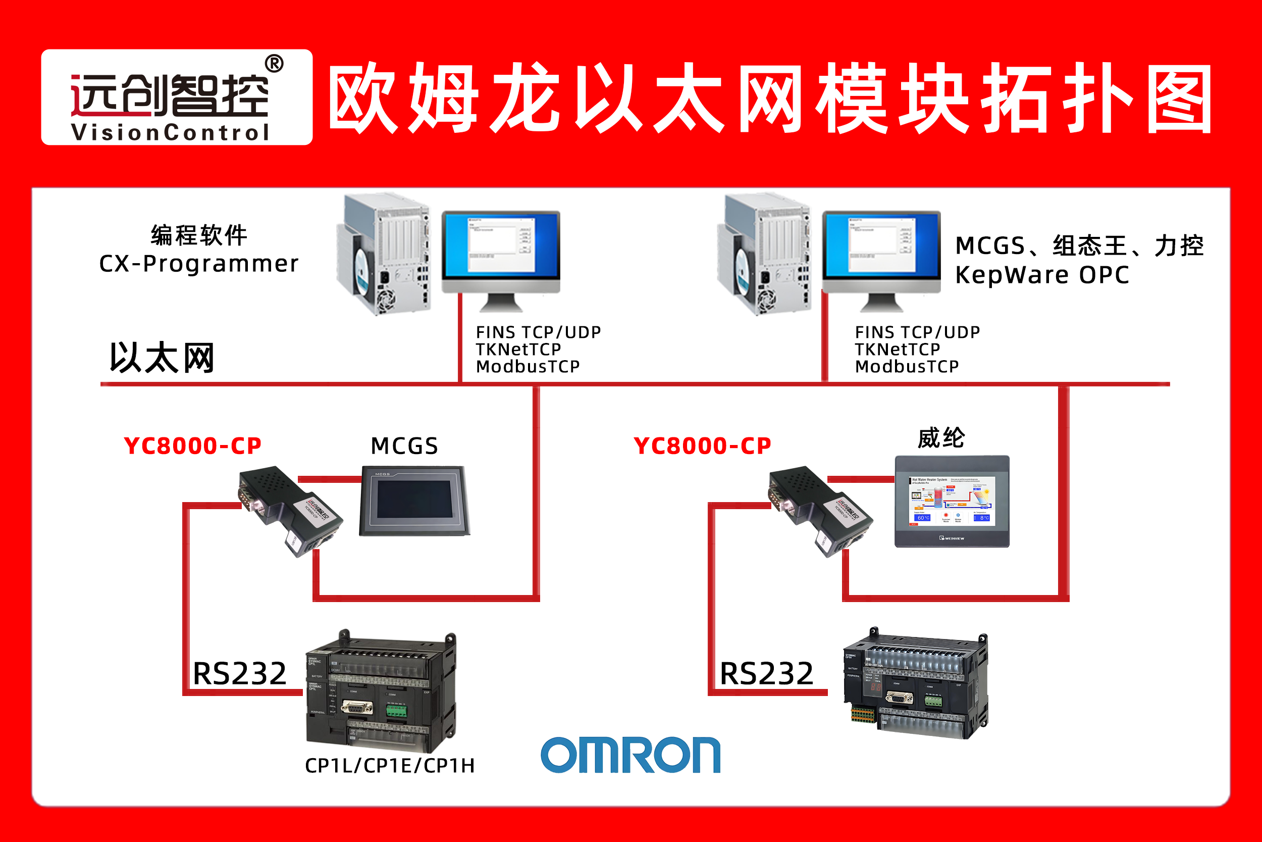 欧姆龙CP系列PLC通过以太网模块和西门子触摸屏上位机通讯在灌装车间经典应用案例