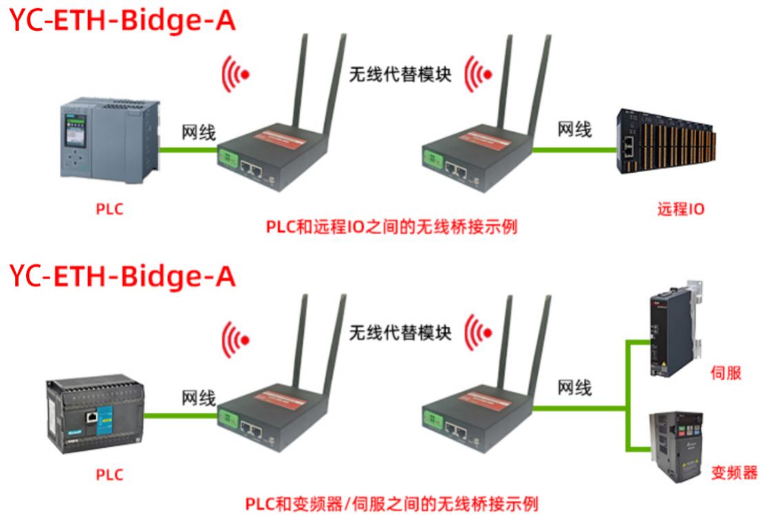 • 制造厂通过工业级无线网桥实现控制室总控制柜与厂区电机进行无线通讯