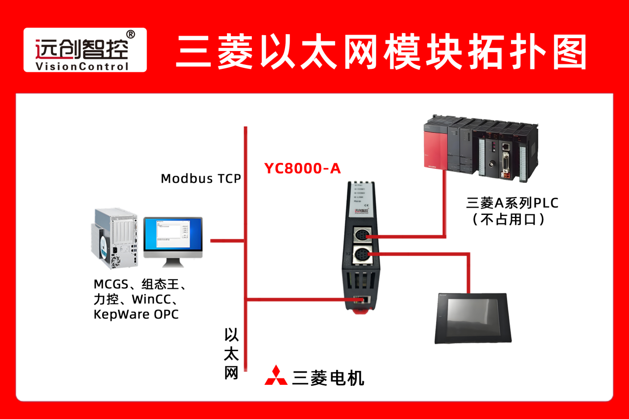 远创智控YC8000-A以太网模块在新能源汽车工厂三菱A系列PLC通讯中的应用案例